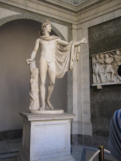 Unfortunately (and not the fault of Luke), the crowds at the Vatican are the most ridiculous sight I have ever seen. From the line up of over 1hr just to get through security screening, to the 30min queue for the toilets, to the crush inside the Vatican museums, I didn't really enjoy any of it. Despite being pretty much pushed by the crowds from behind the whole time to keep moving through the galleries, I did manage to take some photos & learn some stuff. This is a statue of Apollo - Michelangelo used the face from this statue as the face of Jesus in the Sistine Chapel.And this is a torso of Hercules - this is what Michelangelo modelled Jesus' body on.One of the gallery contains marble statues of animals. I liked this Boar.And this monkey.Close up of one of the Raphael tapestries.The gold-leaf ceiling of one gallery.The next stop after the Vatican Museums was the Sistine Chapel. Obviously, not allowed to take photos in there. Despite feeling quite unwell & claustrophobic by that stage, I did still enjoy hearing about the history of the frescoes.